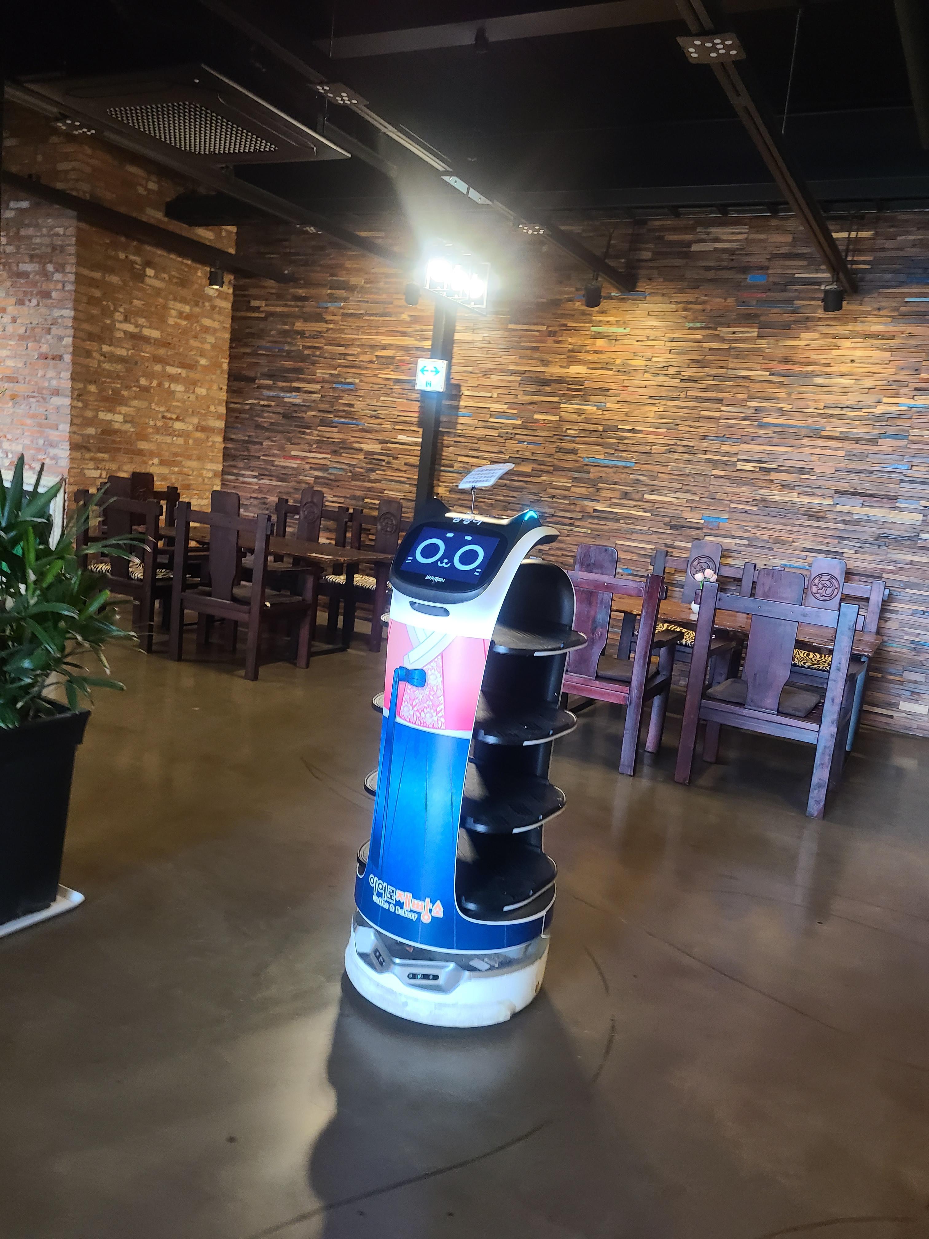 일층에도 여러 좌석이 준비되어있고 열일하는 서빙로봇이 돌아다니고 있답니다. 빈 접시들고 카운터까지 가지 않아도 로봇이 알아서 해주니 편리합니다. 한복을 입은 로봇 넘 귀여워요.