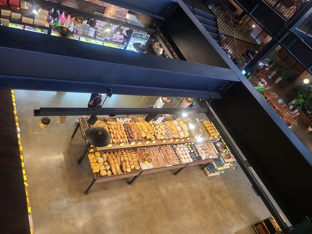이층에서 본 카운터와 빵들...빵들이 넘 예쁘고 맛이 너무 좋아요^^ 저희는 여러개의 빵을 골라 포장해 왔답니다.