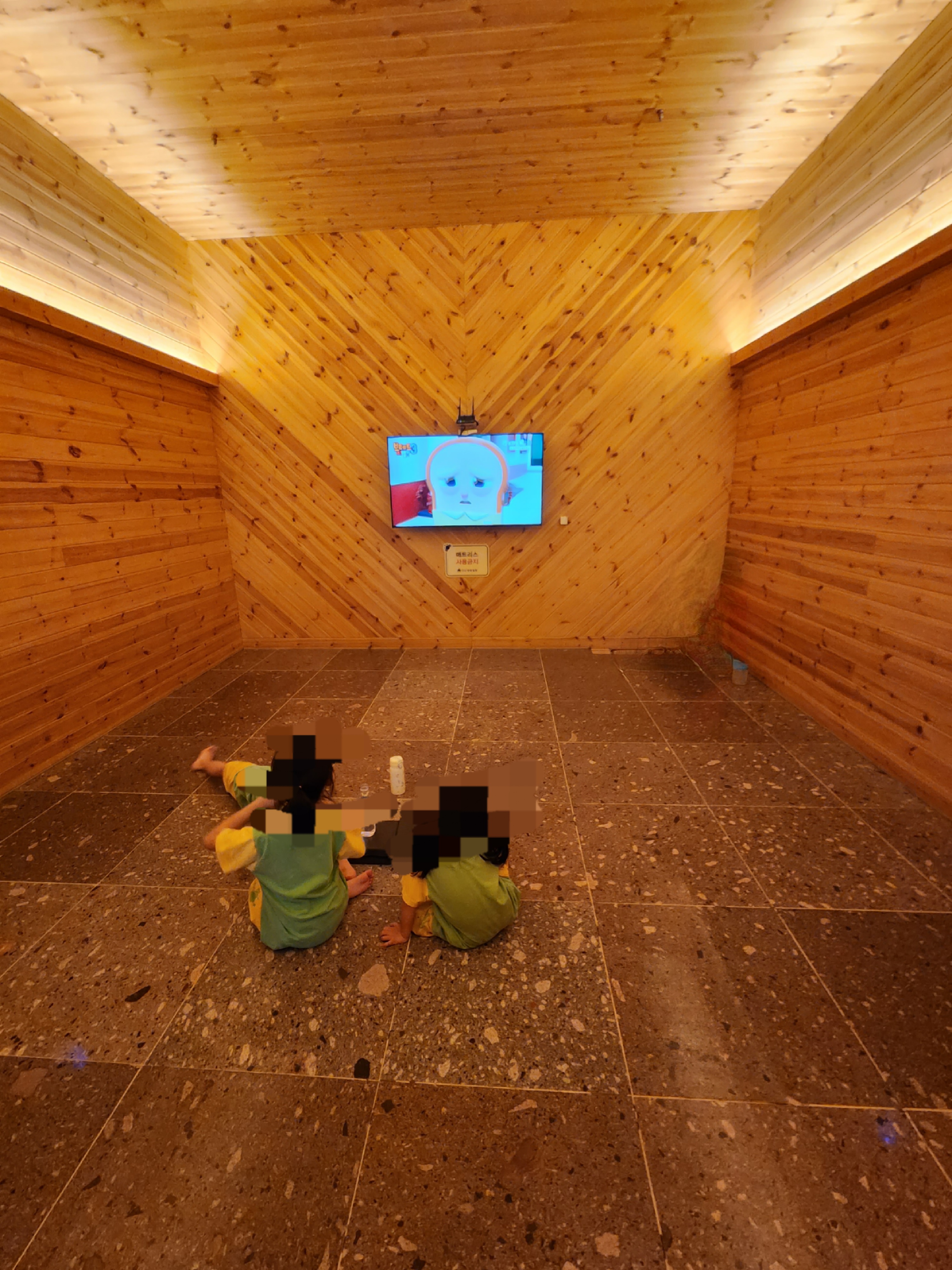 편백산소방은 온도가 적당해서 아이들이 좋아해요. TV로도 아이들이 좋아하는 애니메이션을 많이 틀어주세요^^