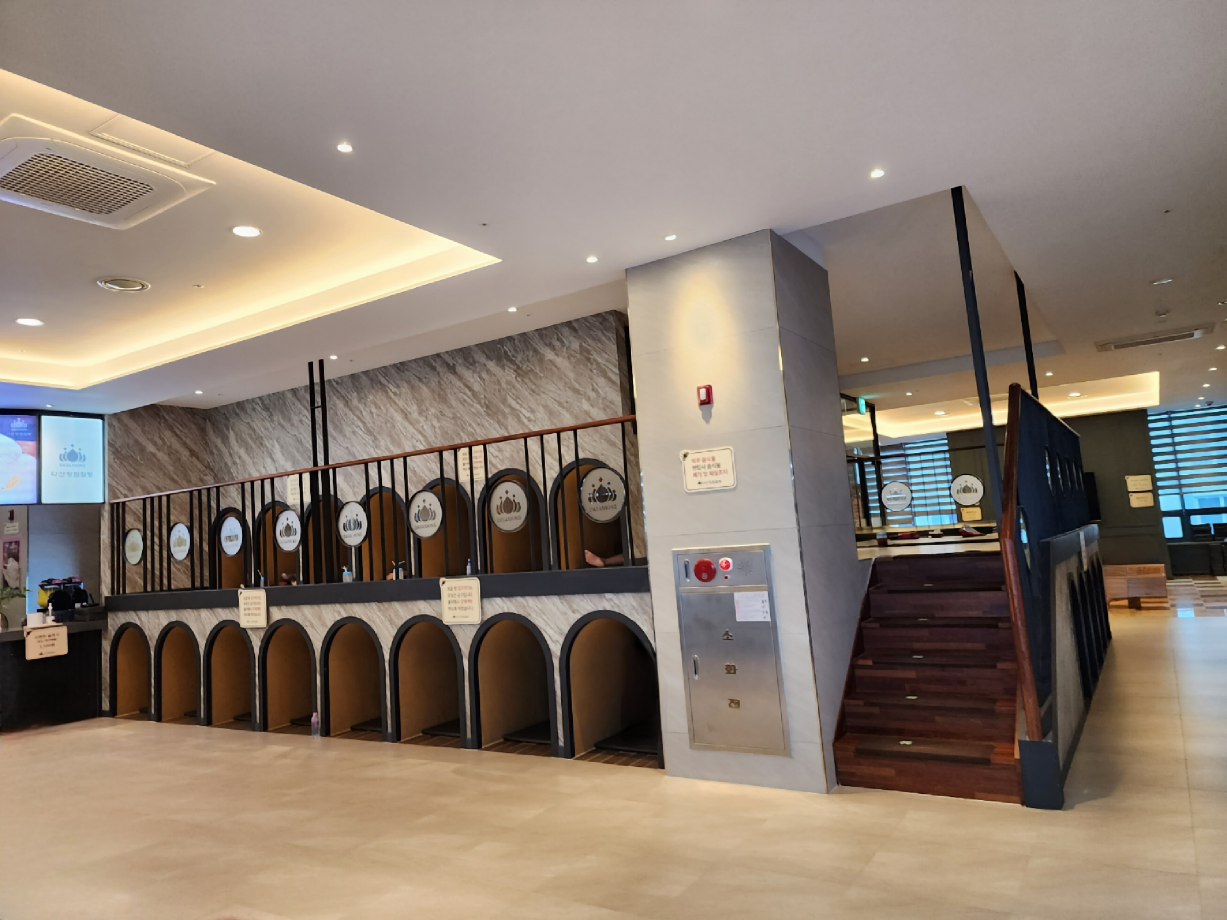 식당앞 키오스크로 주문을 하고 식당으로 들어가시면 됩니다.