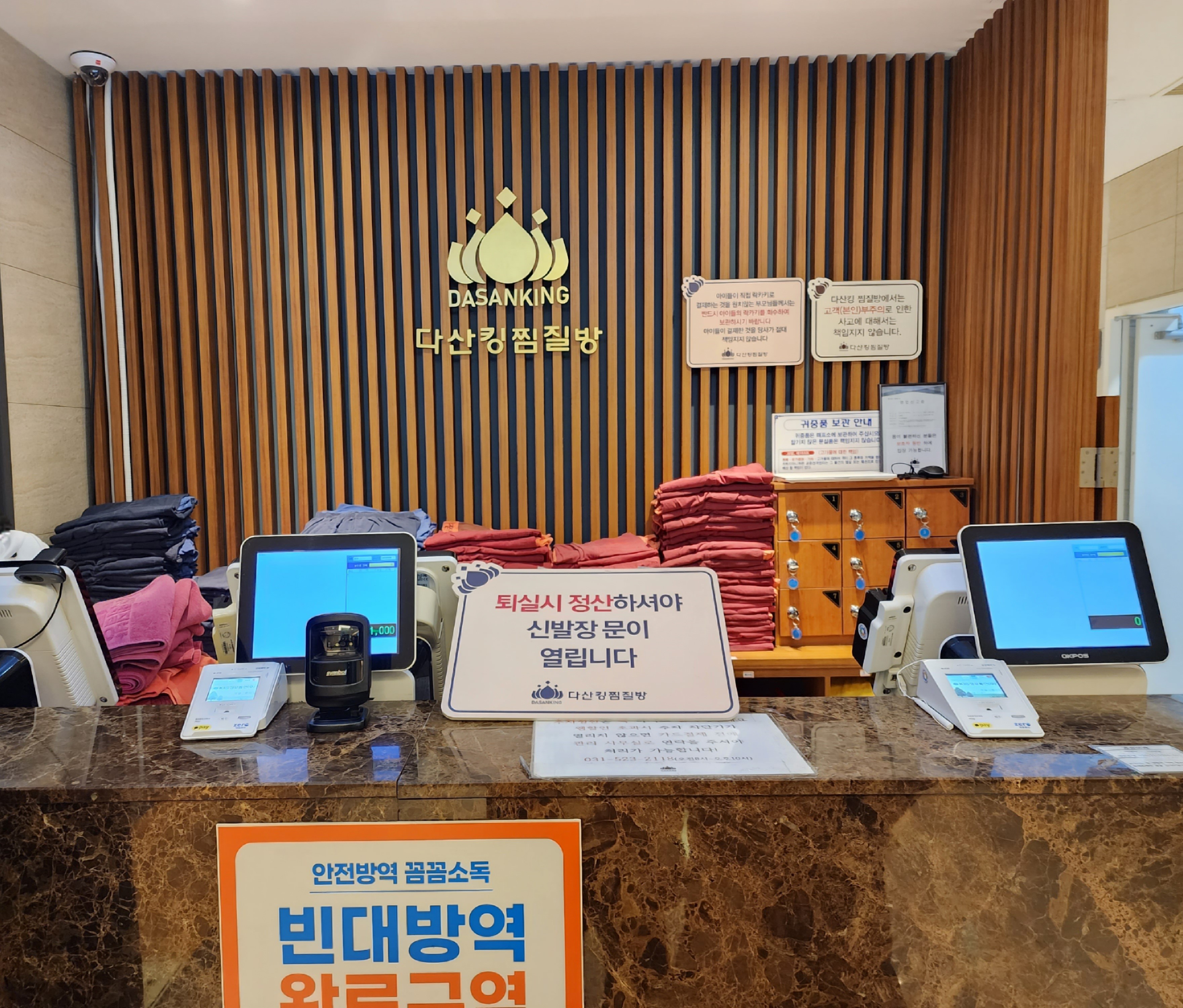 다산킹 찜질방은 7층 8층 두개층을 운영하고있어요. 같은 건물 맛집도 많고 홍종흔 베이커리 카페도 있어서