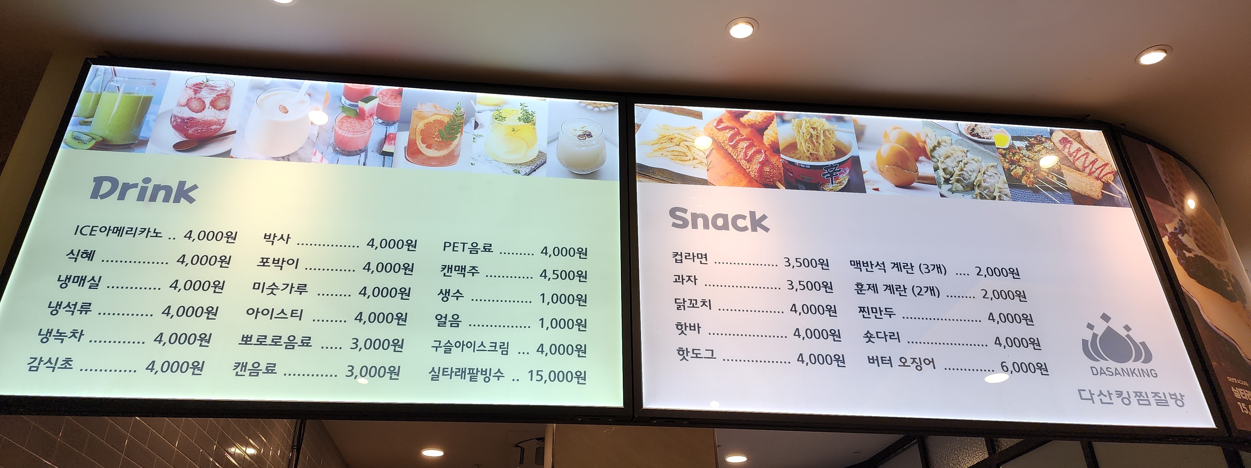 하지만 찜질방에서 먹는 찜질방 한정 밥과 간식이 기다리고 있으니 바로 찜질방으로 올라갑니다.