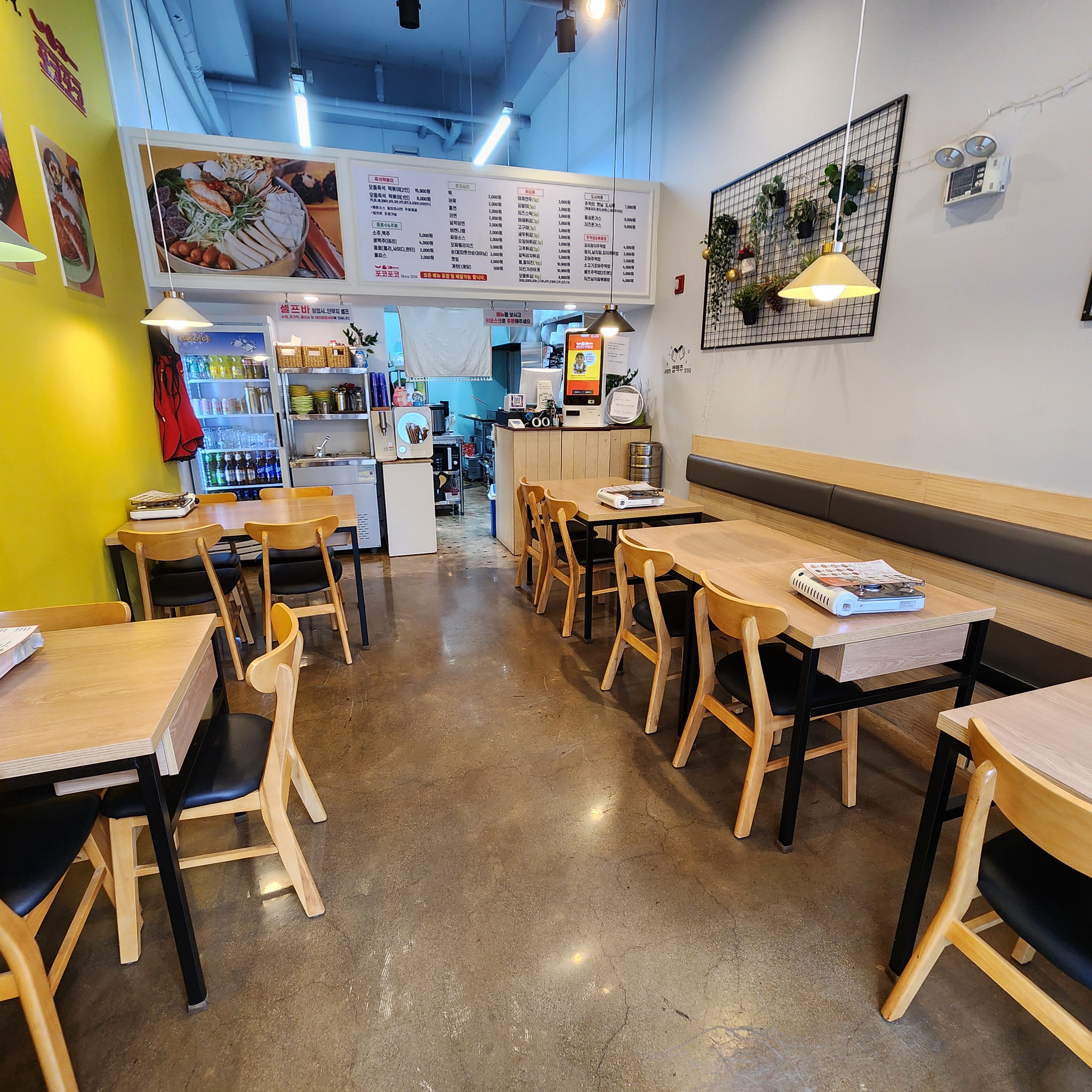 5개정도의 테이블에 산뜻한 노란색벽이 눈에 띄는 매장입니다.