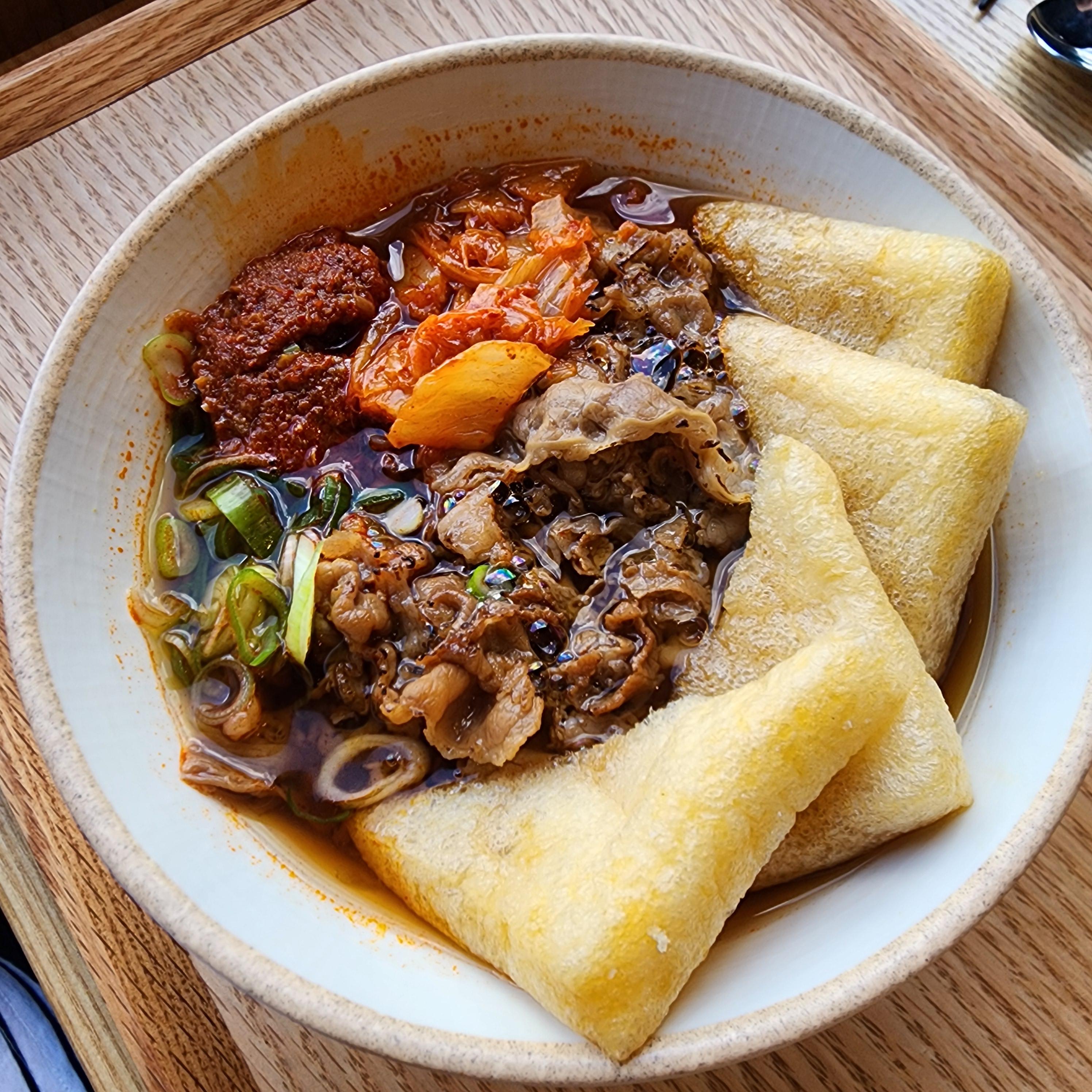 얼큰우동은 많이 맵지는 않았어요. 통통한 유부가 맛있었고 고기가 들어있어서 그런지 기름이 많아요^^