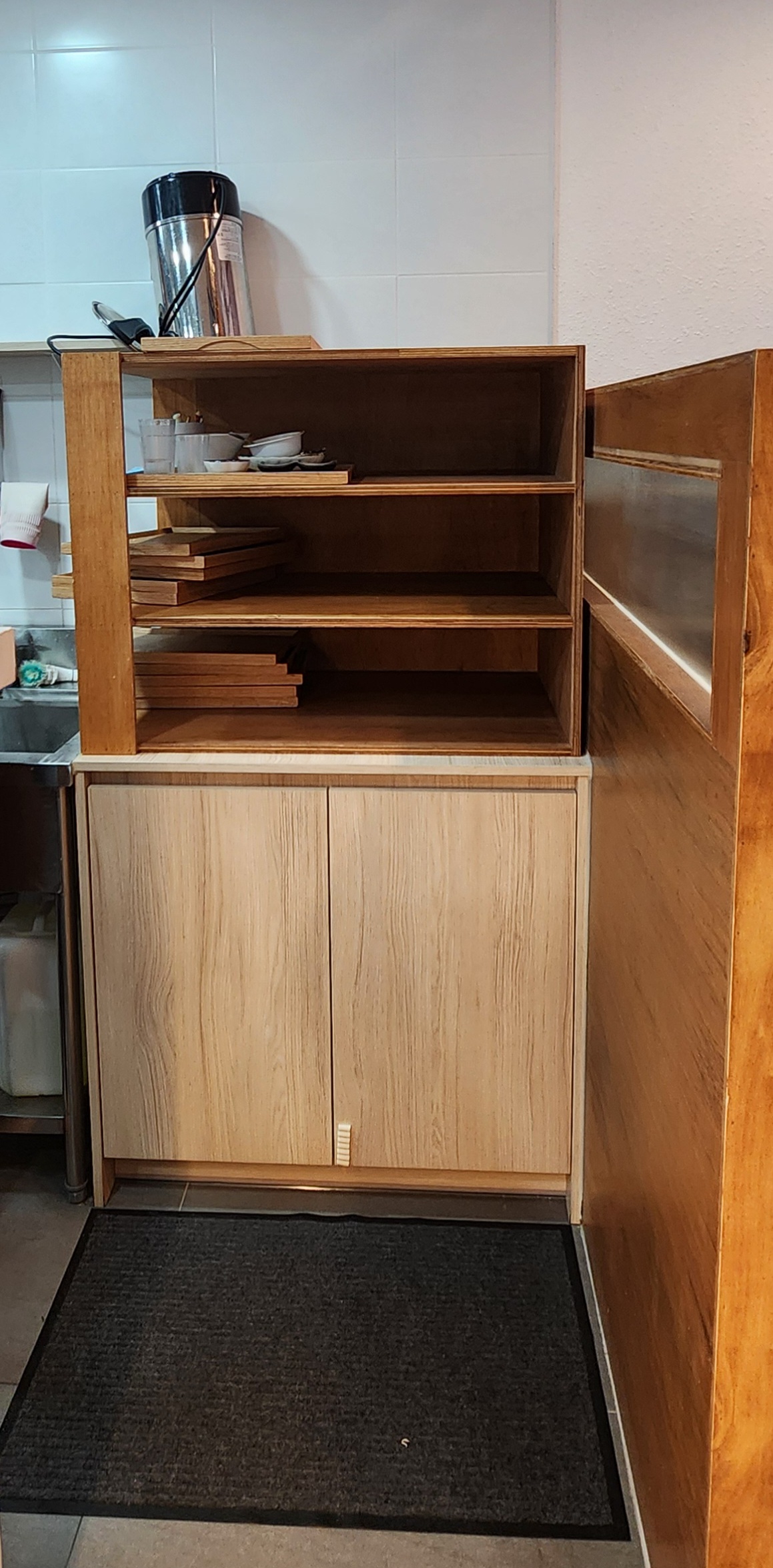 키오스크로 주문하고 중간에 셀프바가 마련되어 있어요.