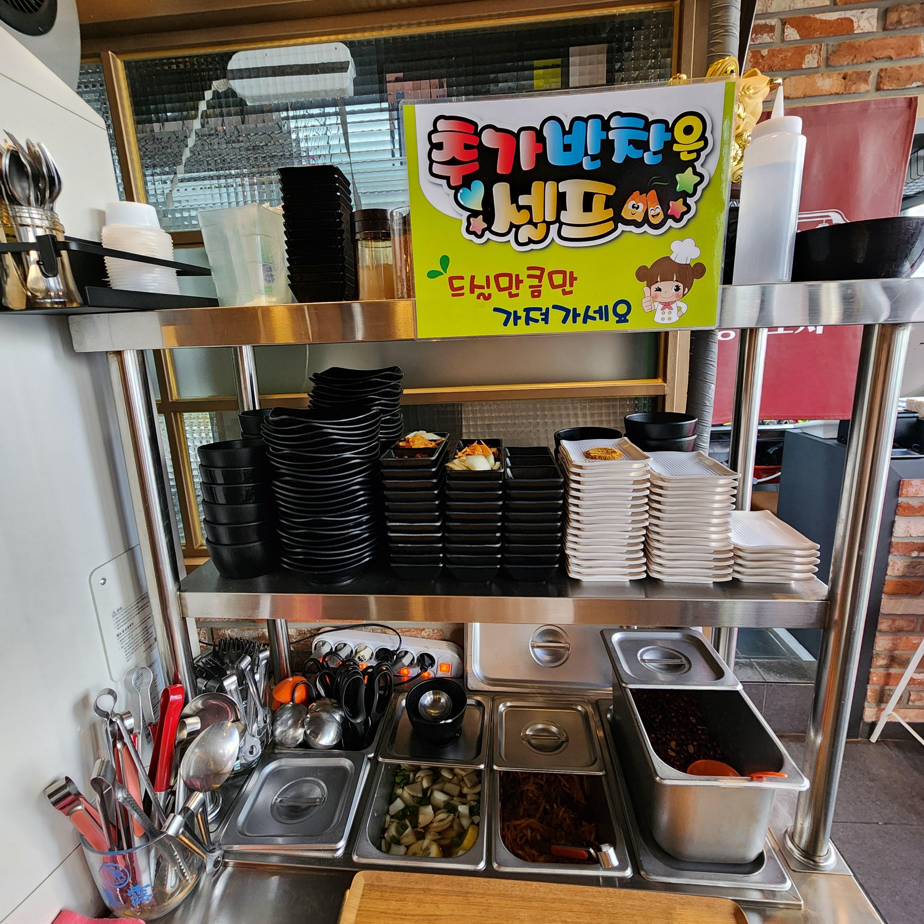 모자라는 반찬은 셀프 코너에서 추가로 가져올 수 있어요.