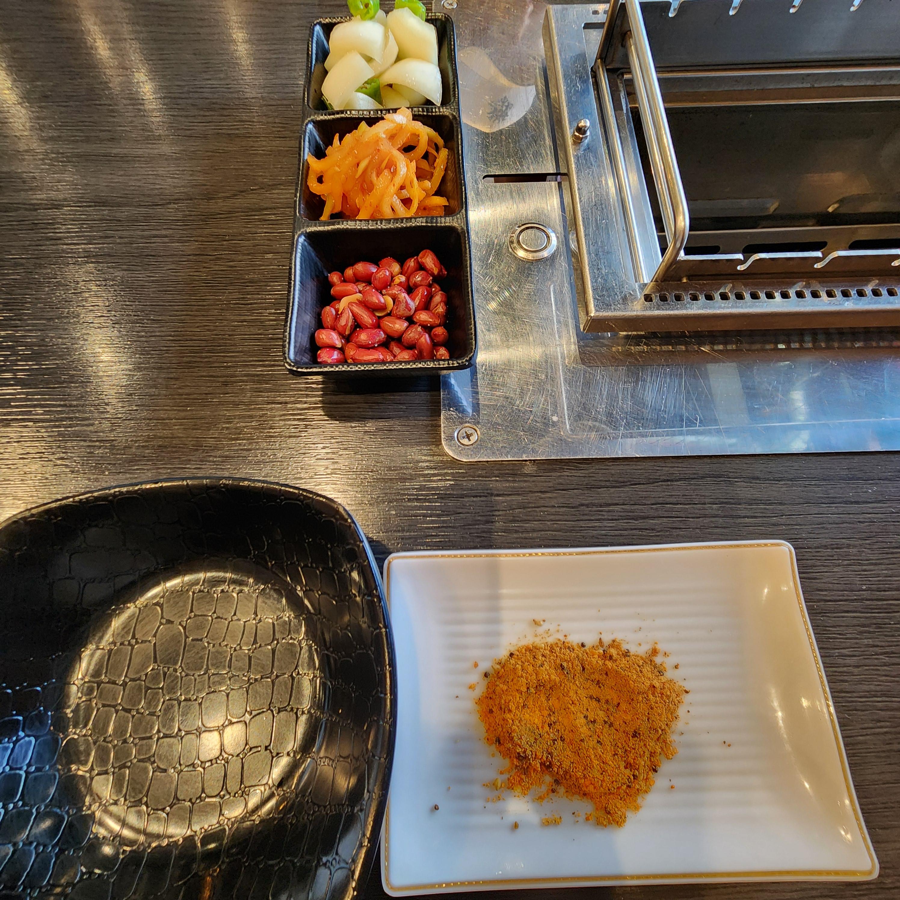 기본 반찬으로 양파짱아찌와 무생채, 땅콩이 나오고 쯔란을 주십니다.