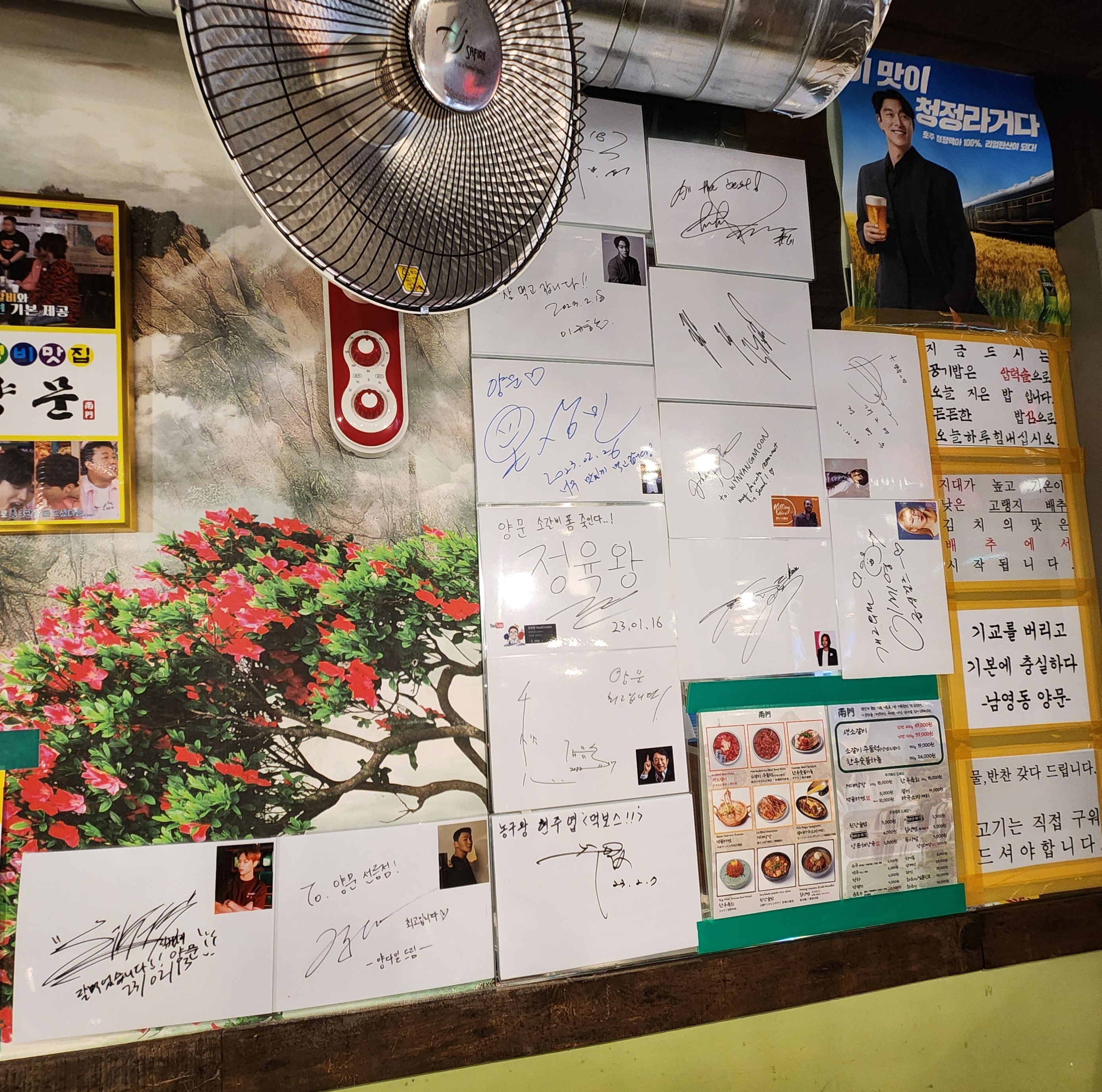 한쪽에 연예인 분들의 싸인이 유명한 맛집을 인증하고 있어요.