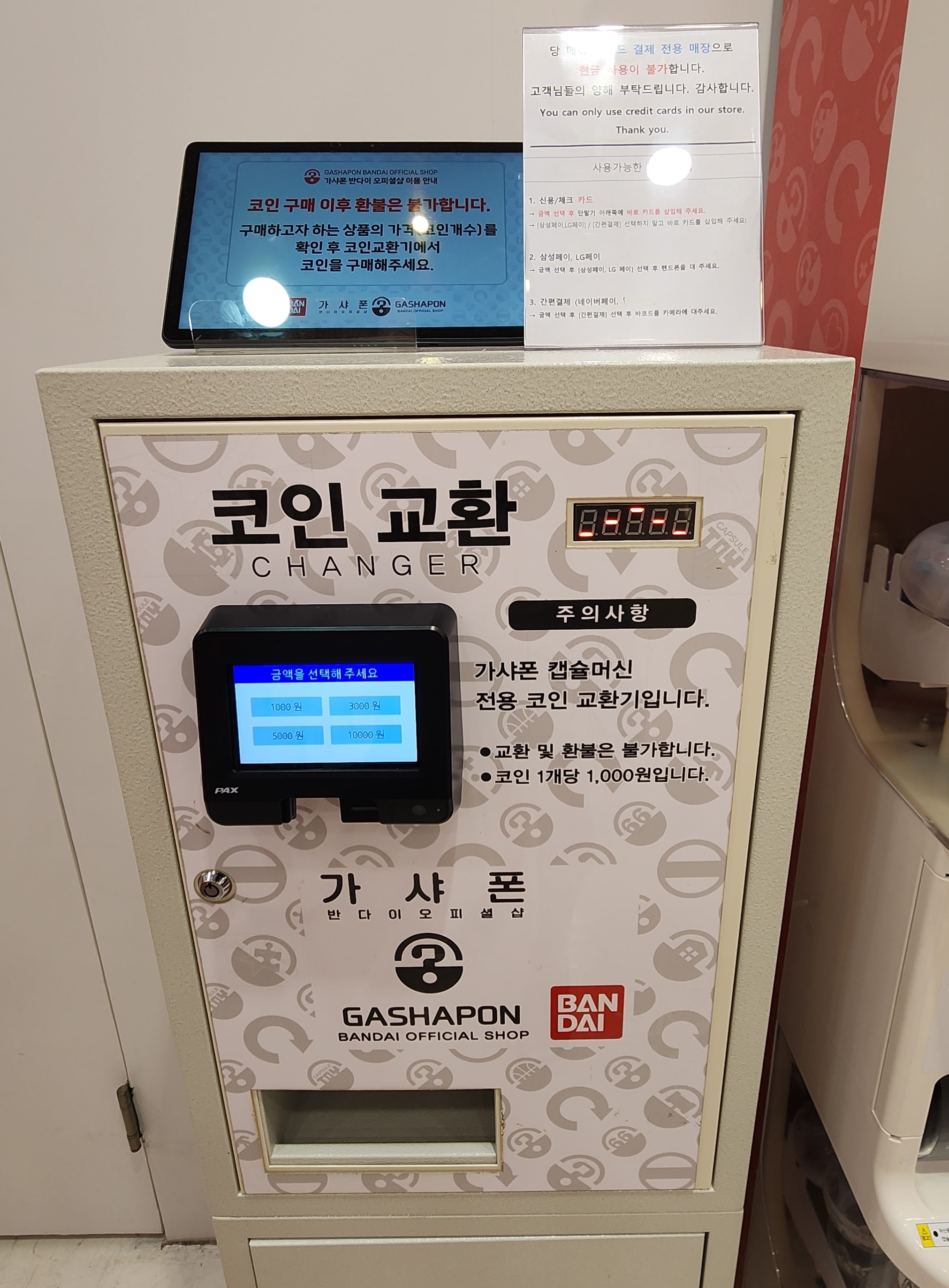 가챠샵 내부로 들어가면 밖에서 보는 것보다는 뽑기기계가 많은것 처럼 느껴지긴 하지만