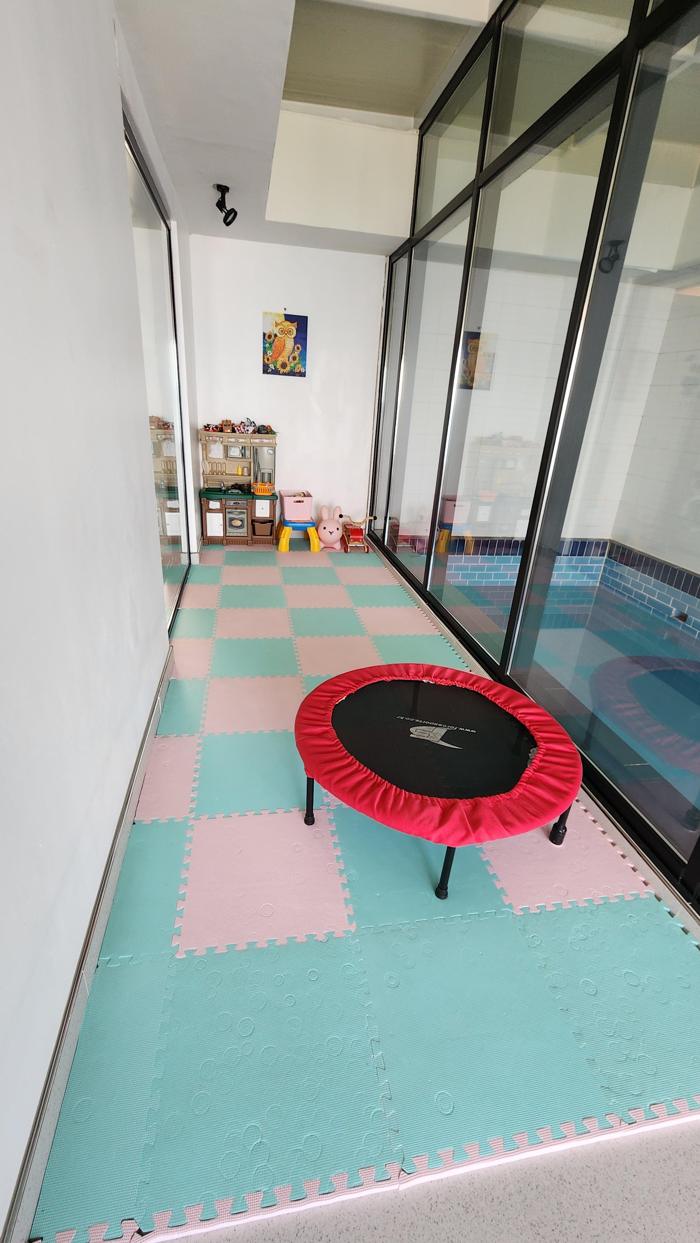 냉장고쪽 문을 열면 베란다가 있고 이쪽은 아이들 놀이공간이예요. 방방이와 주방놀이~ㅋㅋ