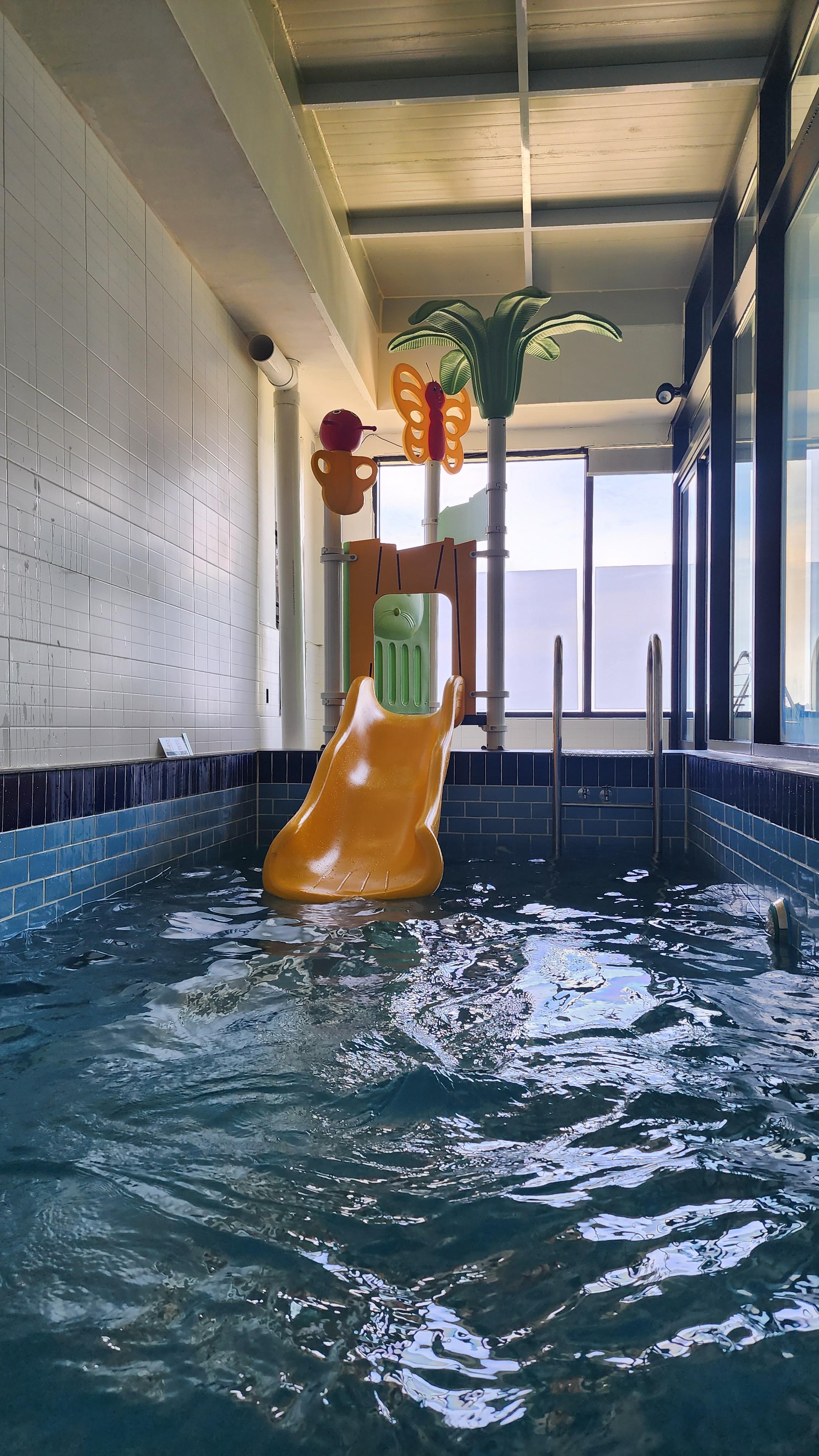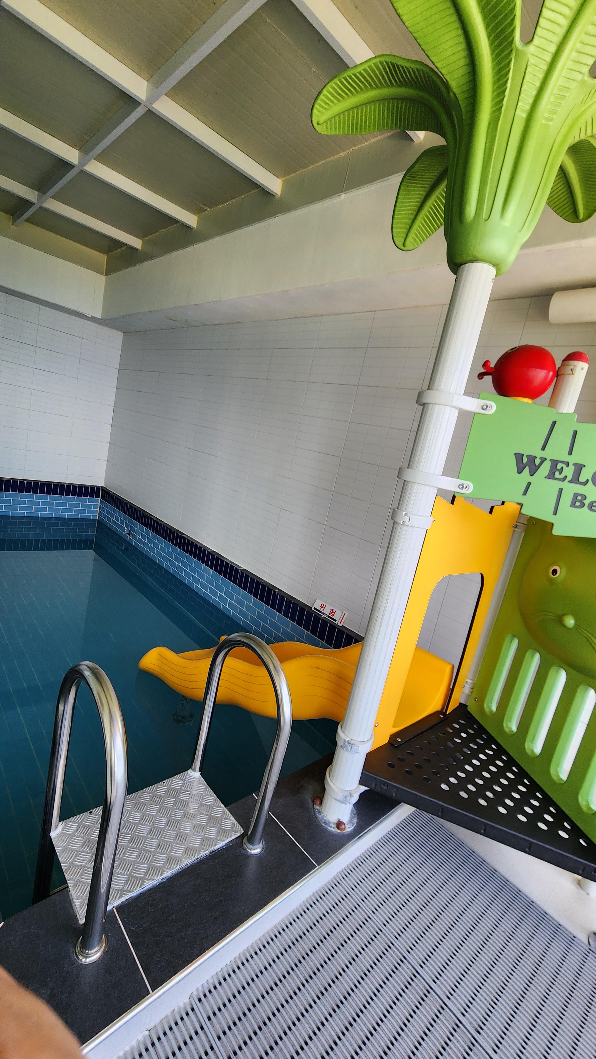 보시다시피 아주 넓직한 수영장에 미끄럼틀이 있어서 정말 재미있어요.