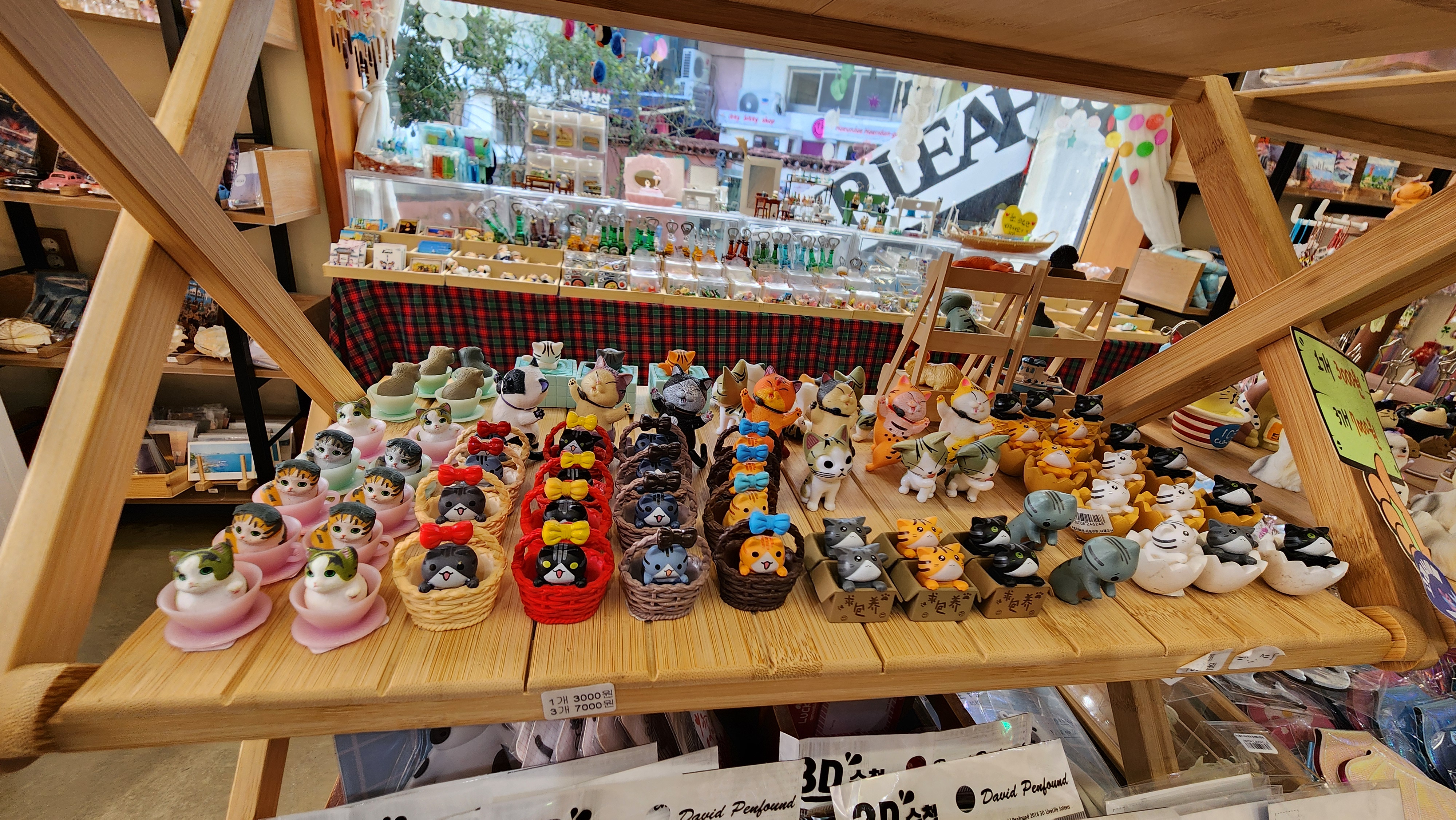 안으로 들어가면 고양이 피규어들과 텀블러, 한국적인 부채, 노리개등등 구경거리가 정말 많습니다.