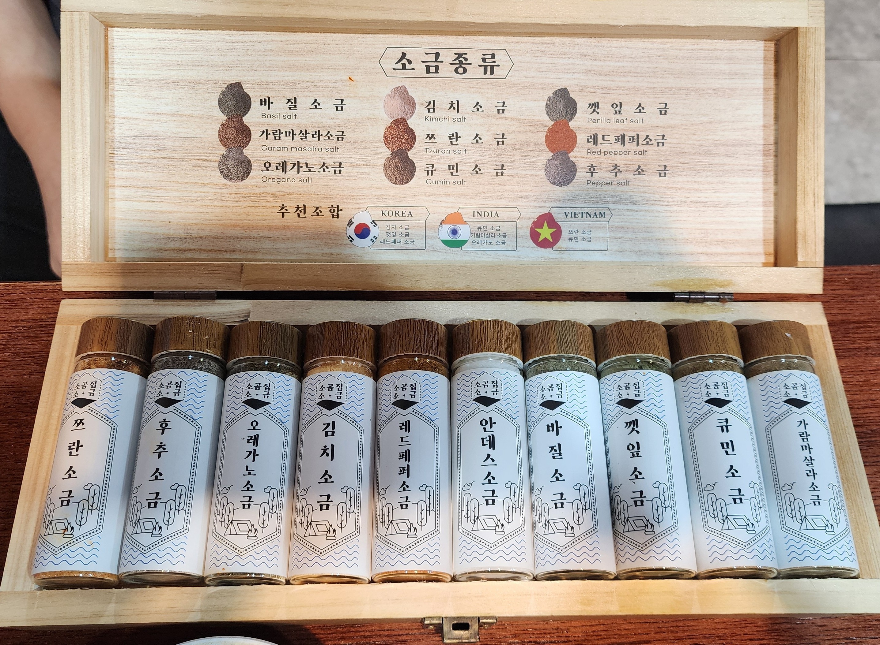1. 특색있는 소곰(소금)이 10가지. 개인의 취향대로 소금도 내마음대로 조합 DIY!!