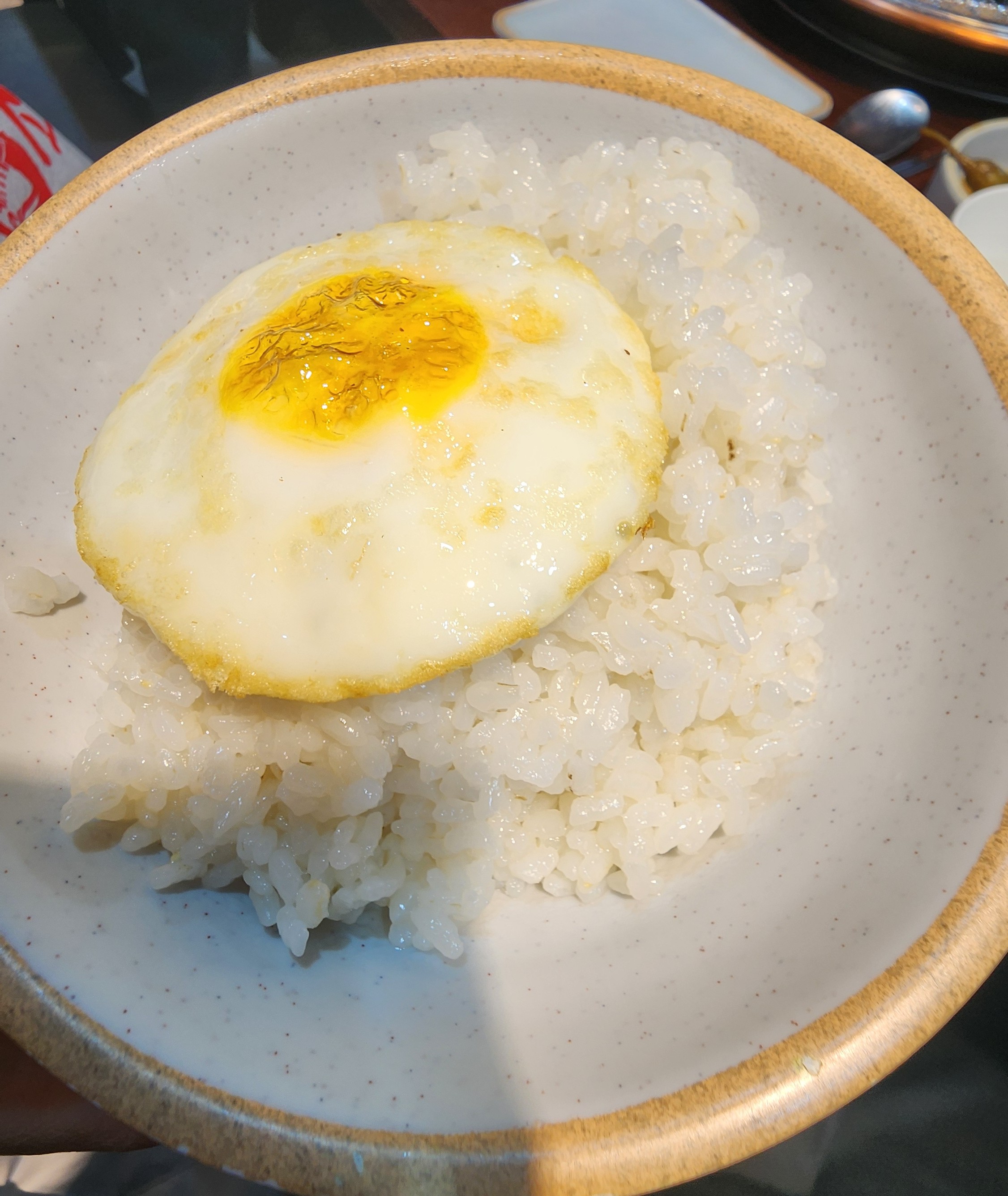 공기밥을 주문하면 계란후라이가 올려져 나와요.