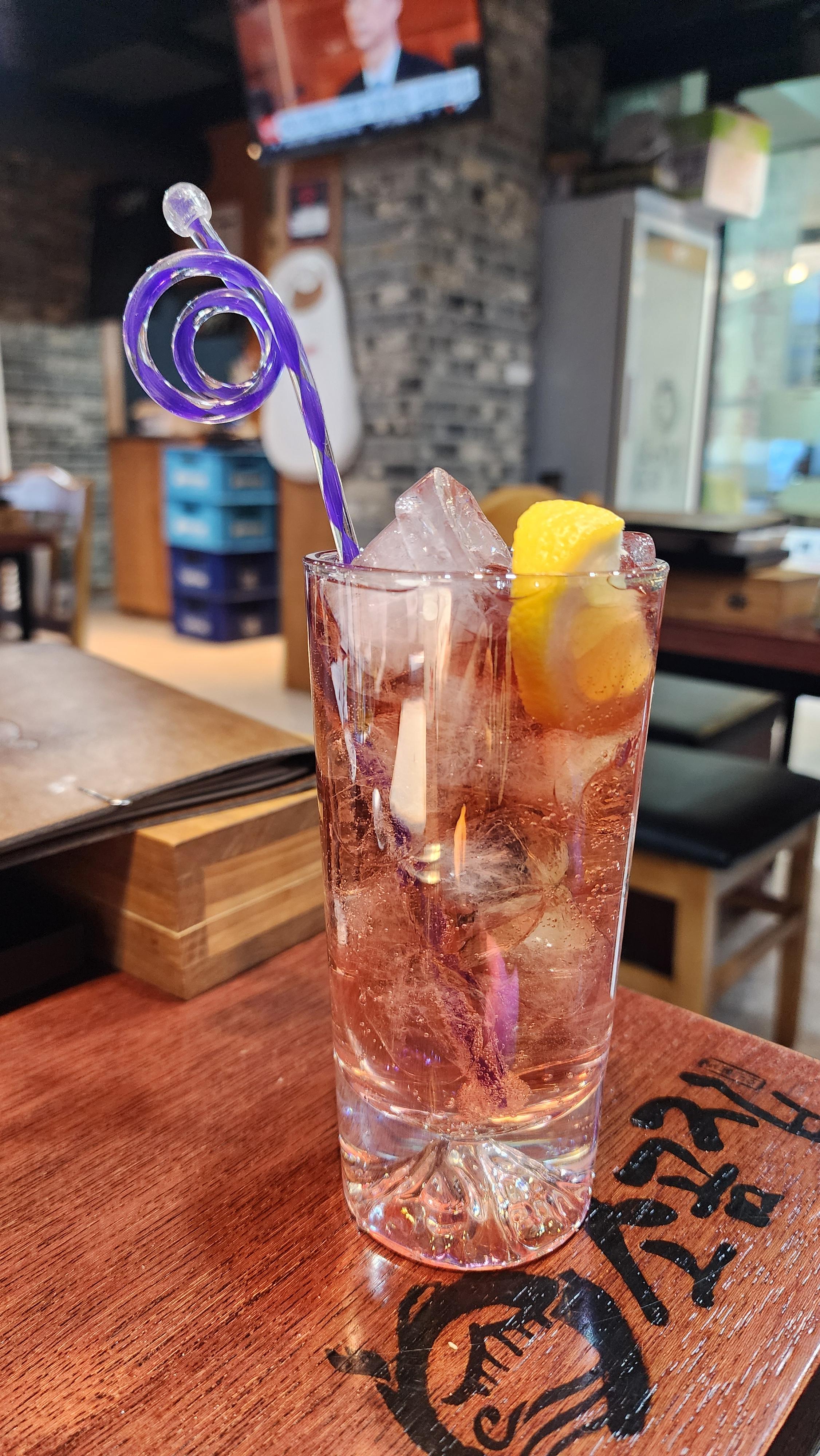 똥글똥글 귀여운 장식과 함께 너무예쁜 색깔의 하이볼은