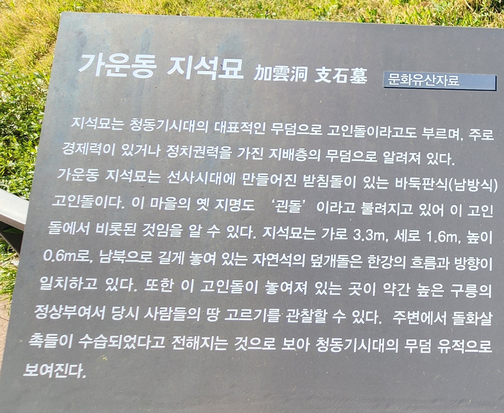 청동기 시대의 가운동 지석묘도 보존되어 있는데 이것도 고인돌의 종류인듯 해요.