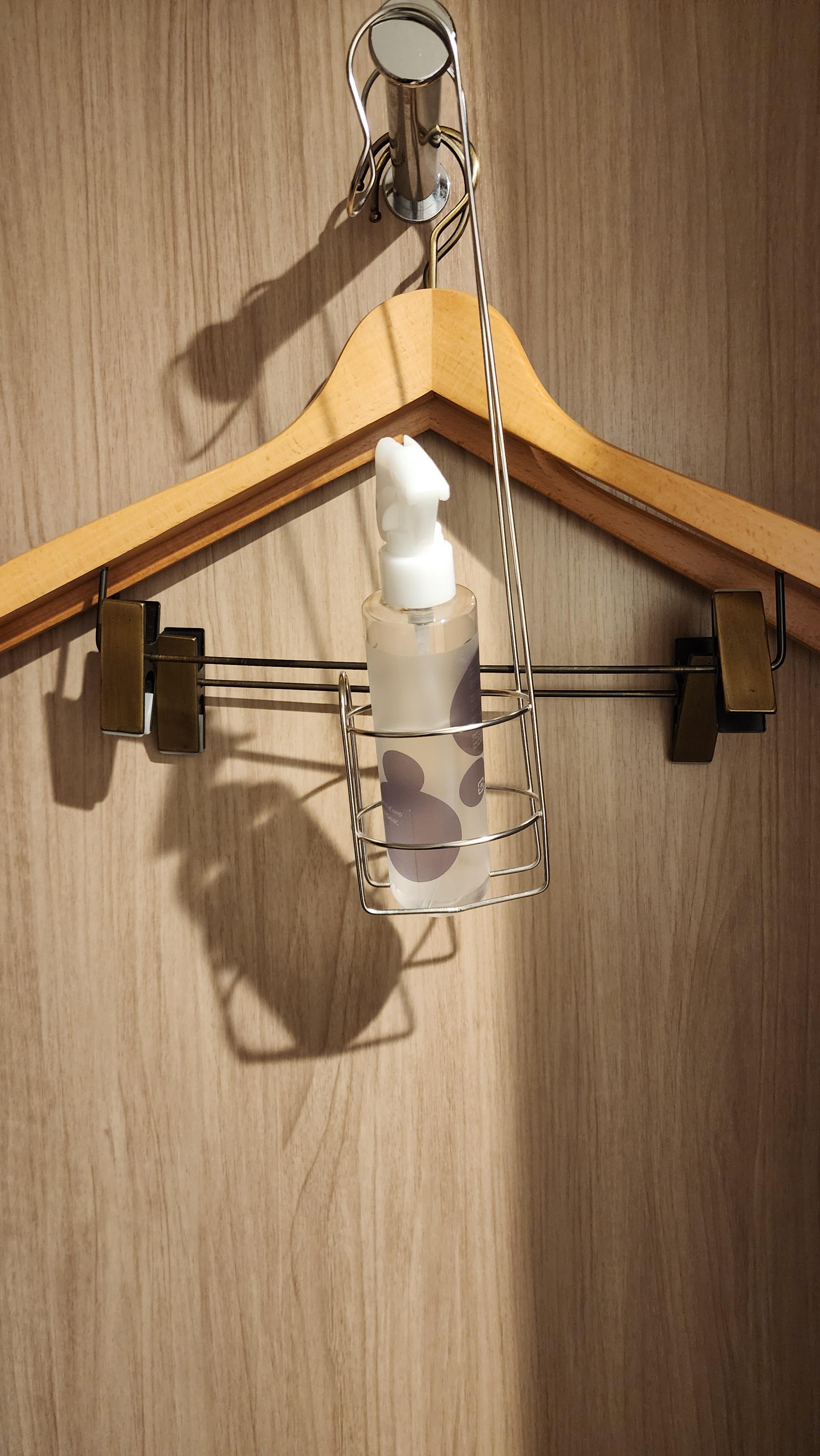 출입문쪽으로 옷걸이와 섬유탈취제도 준비되어 있었고, 슬리퍼와 구두주걱도 있습니다.