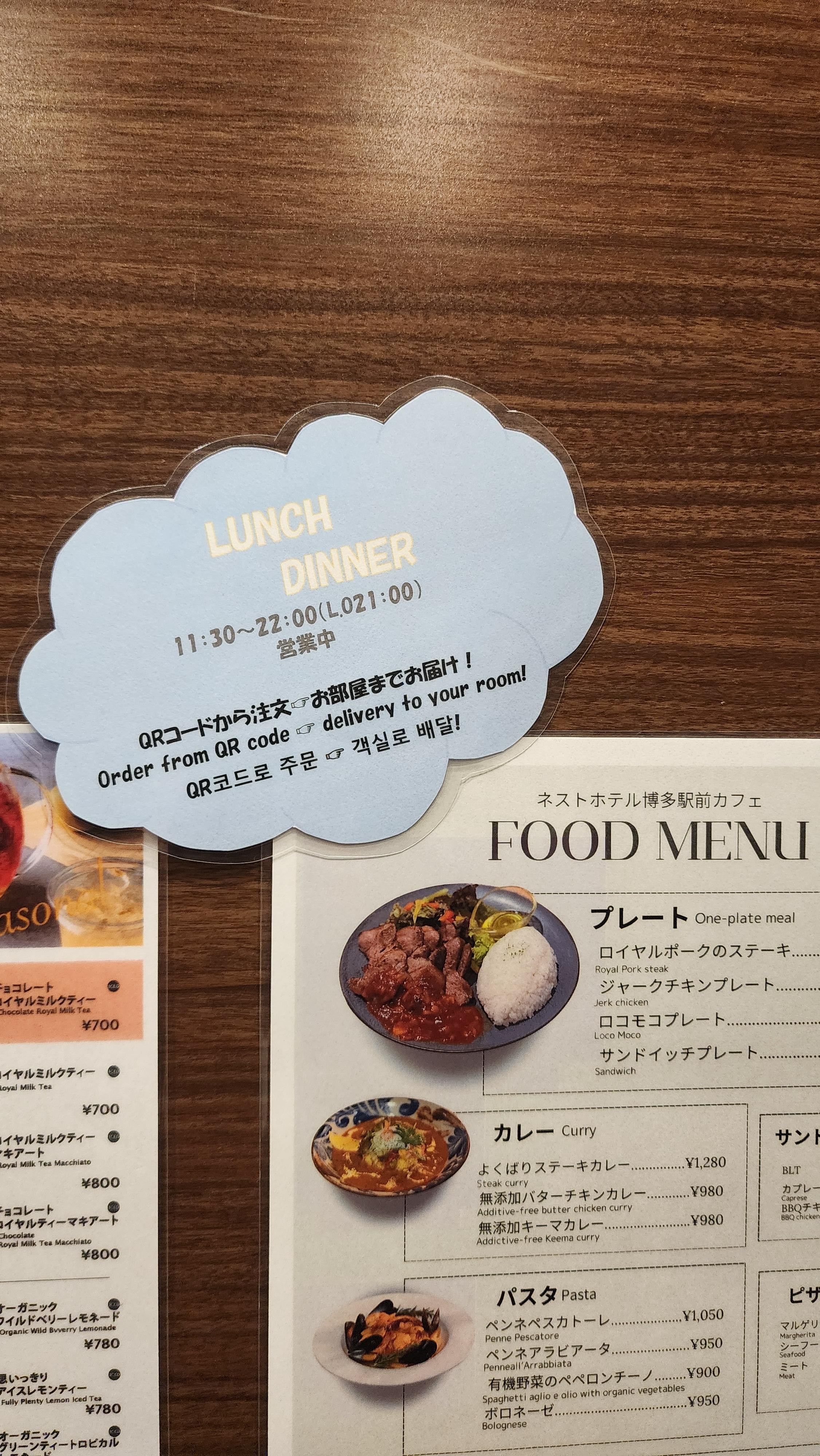 아픈다리로 도저히 나가기 어렵다면 객실에서 편하게 QR코드로 룸서비스를 시킬 수 있습니다.