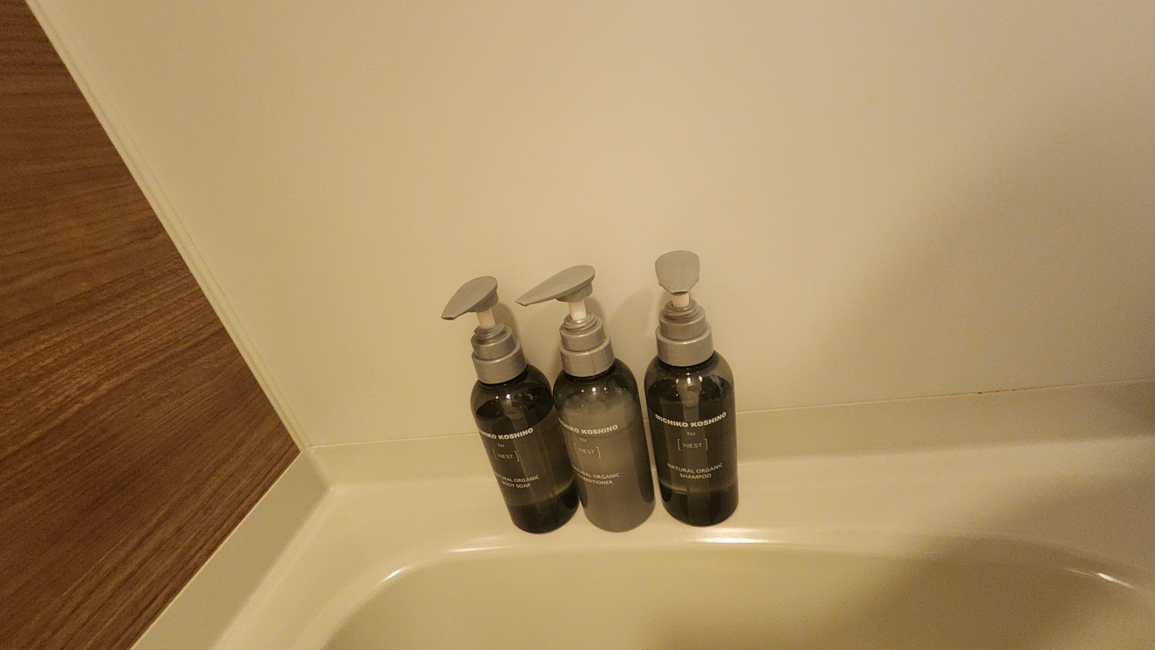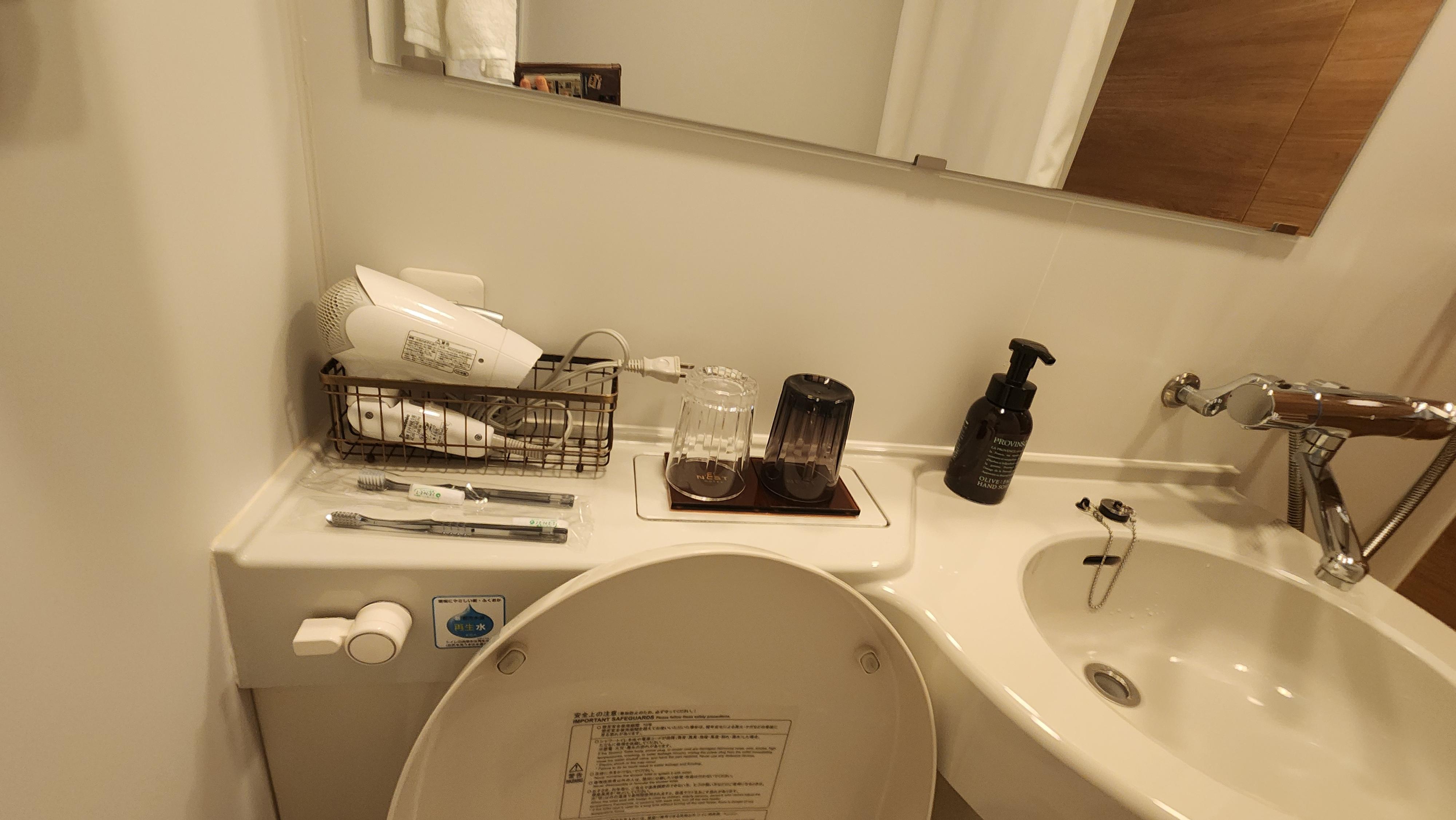 샴푸,린스,바디워시 어메니티가 있고, 드라이기, 손세정제, 치약칫솔도 준비되어 있습니다.