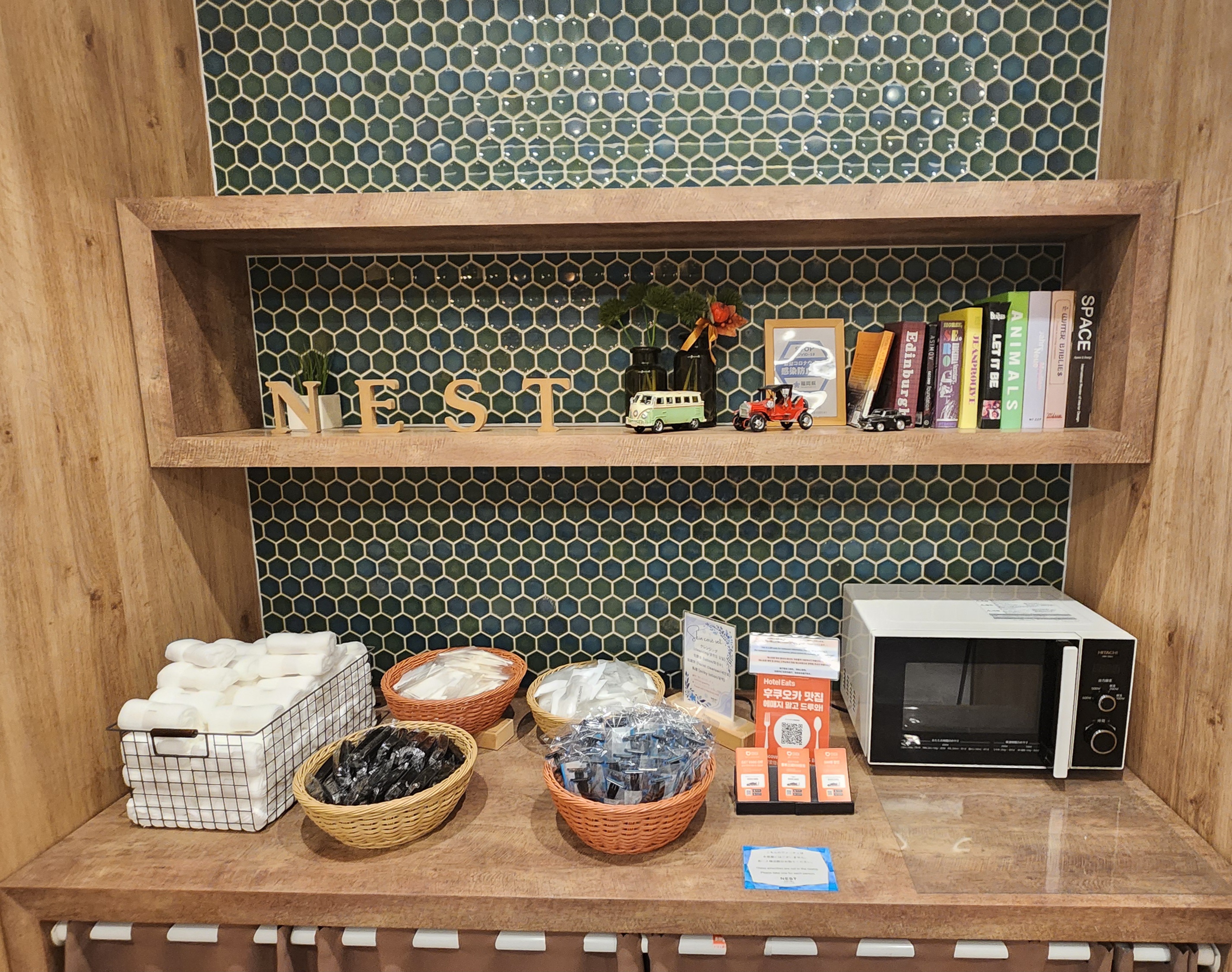 간단히 데워먹을 수 있게 전자렌지도 있었습니다.