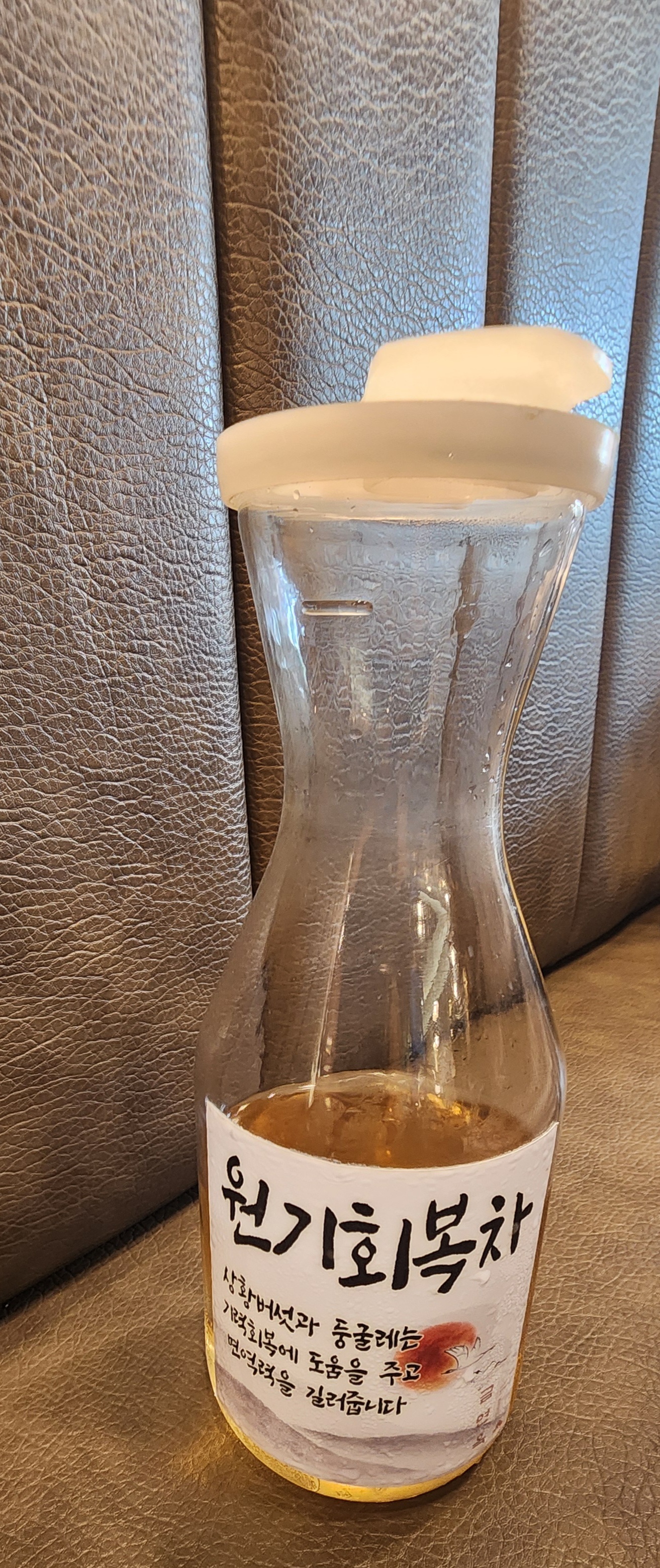 그냥 물이 아닌 원기회복 차 입니다. 상황버섯과 둥글레를 끓인 차 인데요^^ 구수한 차로 시원하게 일단 한잔하고