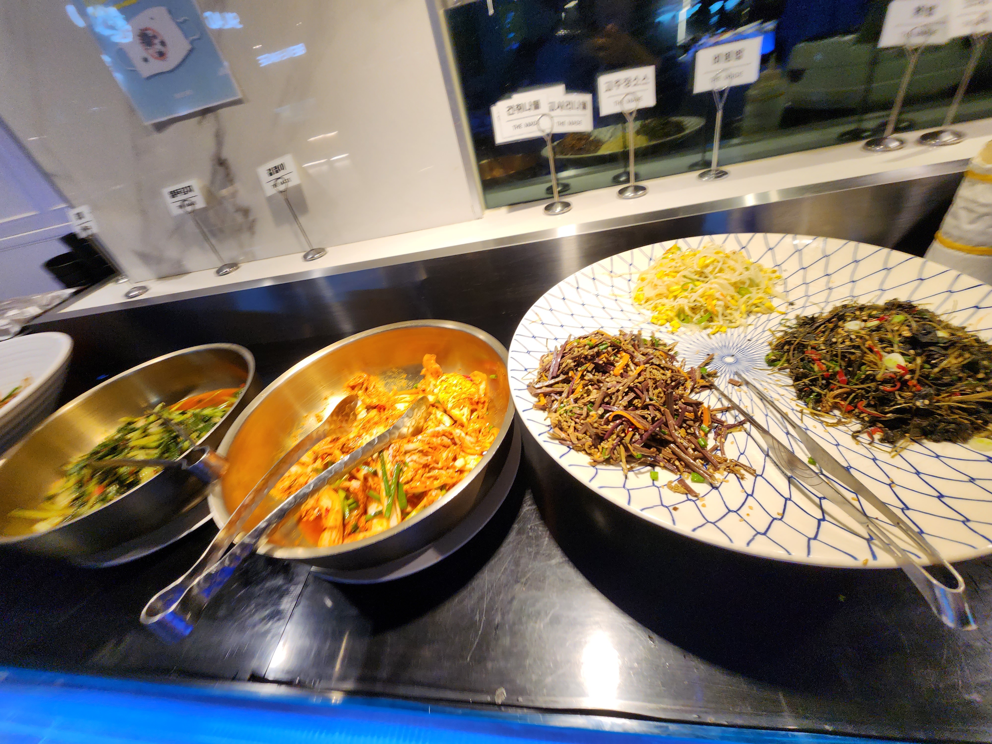 양념게장도 맛있게 생겼어요. 비빔밤을 해 먹을 수 있는 한식코너도 나물 종류가 많이 있어요.