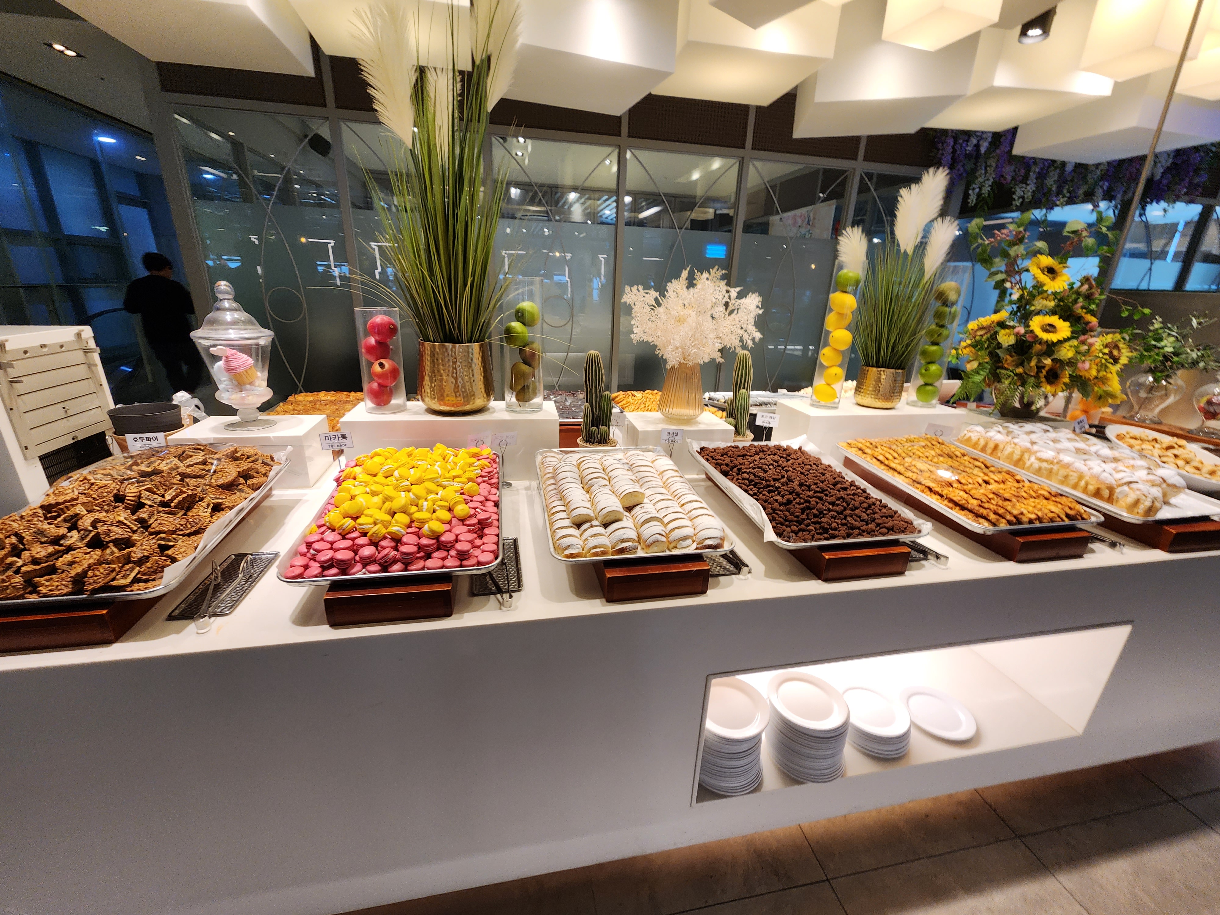 여느 뷔페 디저트 코너와는 다르게 종류가 참 많아요. 다 먹어보지 못했지만 앙버터와 호두파이 맛있어요.