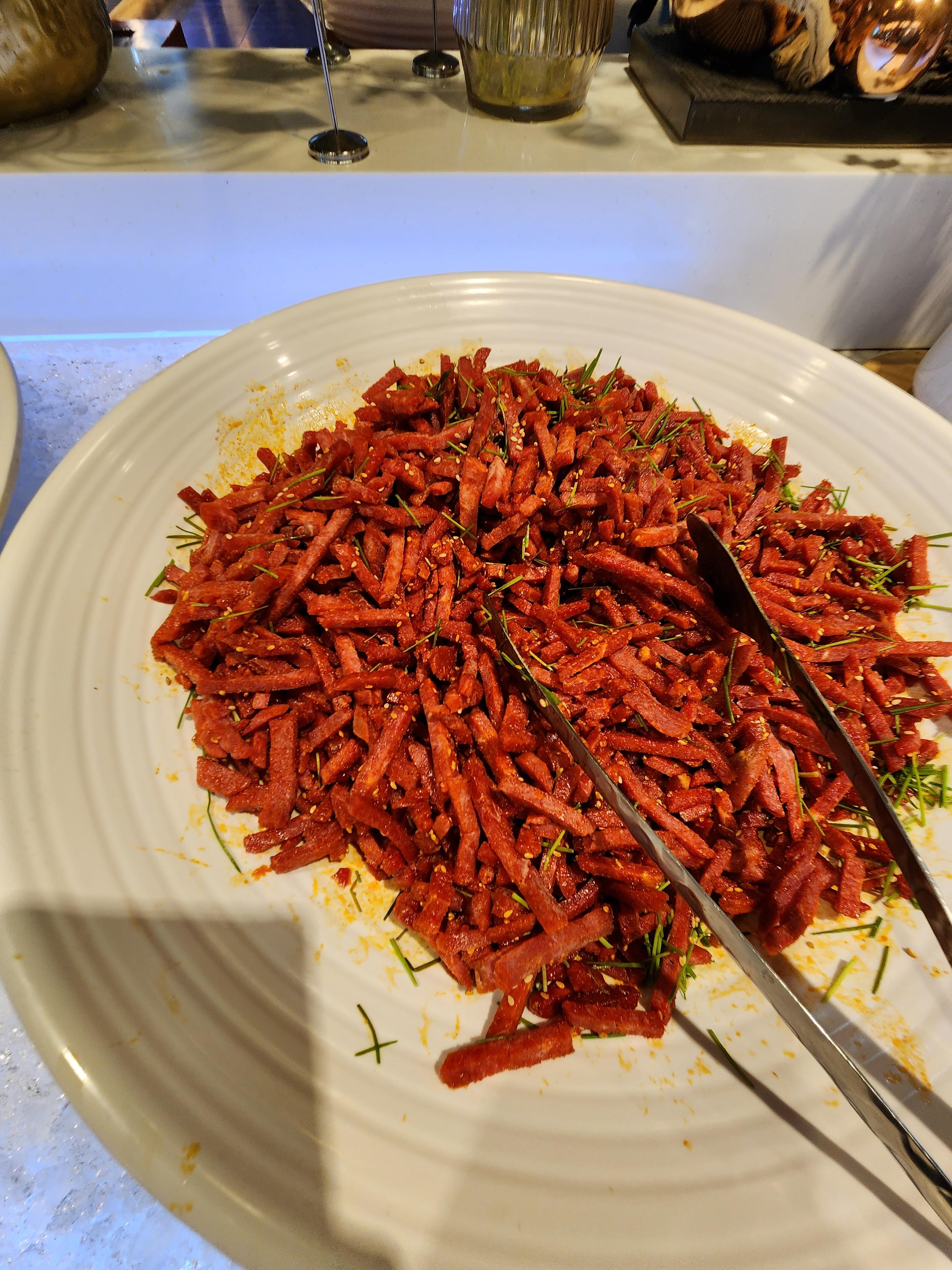 뷔페의 전형적인 냉동 육회. 장이 약해서 날것을 잘 먹지않는데 더구나 냉동이라니...ㅠㅠ