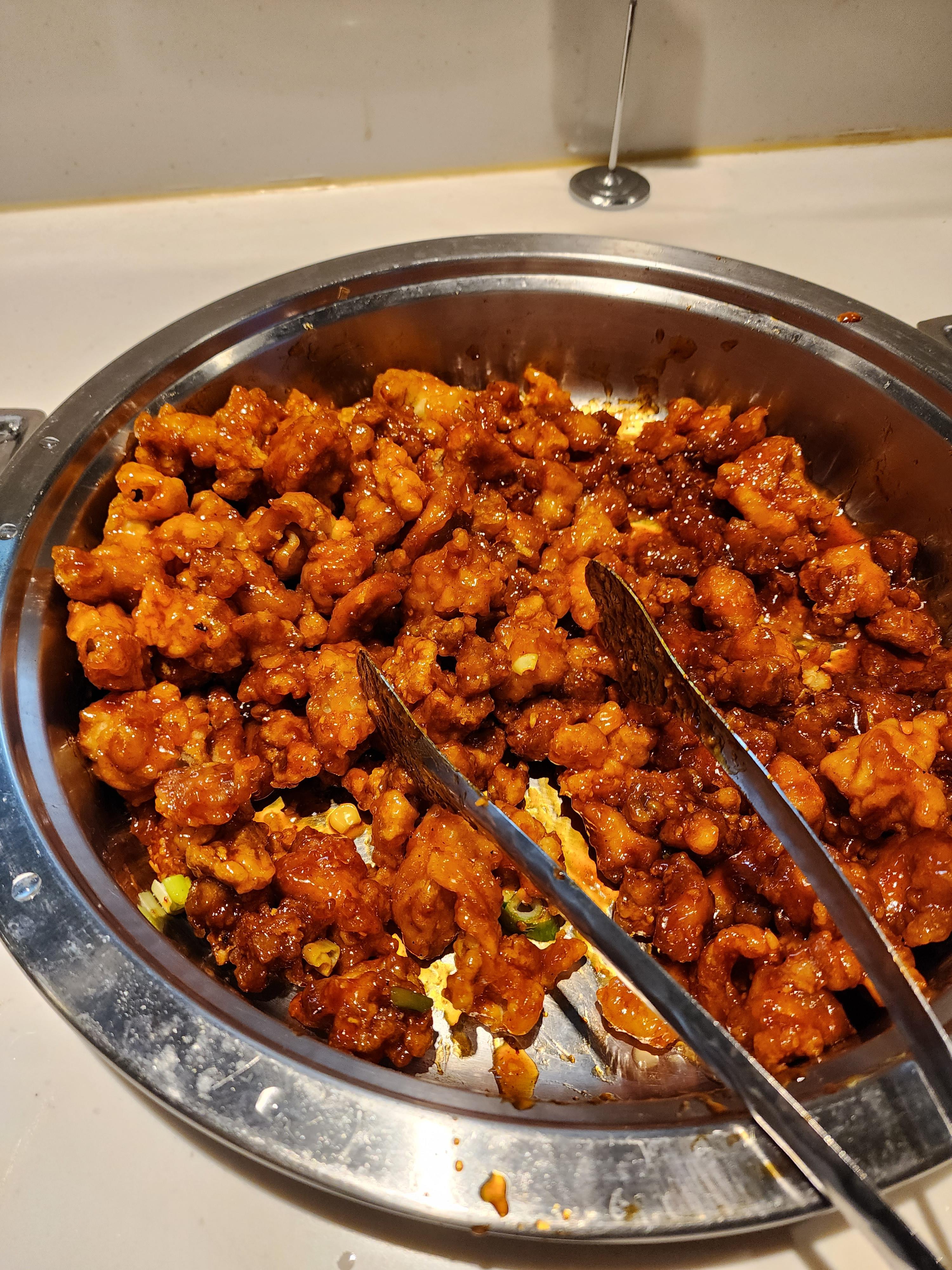 따듯한 음식 코너 전복볶음, 떡갈비, 닭강정, 불고기. 전복볶음 맛있어요!!