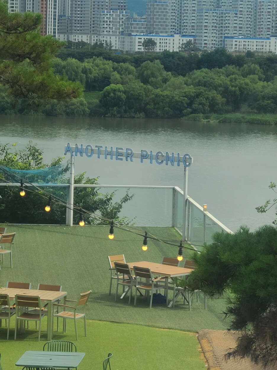어나더피크닉 경기 남양주시 강변북로 632번길 57-1 매일 11:00 - 22:00 0507-1498-2015 아기 의자. 반려동물 동반 가능. 장마가 예고된 후 날씨 좋은날 어디든 한번 가자 해서 가까운 어나더 피크닉으로 이동. 길이 험하지는 않았으나 다와서 올라가는 언덕길이 너무 무서웠어요.ㅜㅜ 언덕이 상당히 경사가 있어서 올라가고 내려올때 특히 조심을 해야 합니다. 토요일 점심때 방문 하였는데 여유있었어요. 날이 조금 흐리긴 하지만 경치가 정말 좋았어요. 반려동물과 함께 산책하시는 분들도 종종 계셨어요. 반려동물을 위한 음식은 없기때문에 간식을 챙겨오시는 것이 좋을것 같아요/ 일층보다 이층에서 바라본 뷰가 좋았고 주차장은 제1 주차장과 어나더 주얼리 옆 제 2주차장이 있어 넓은 편 입니다. 바닥이..